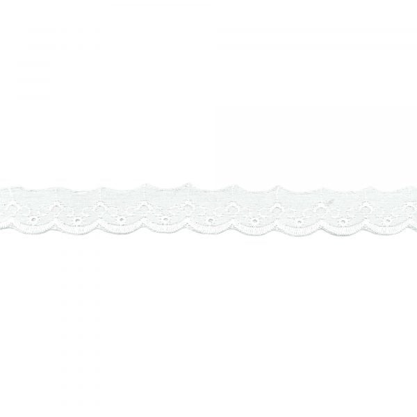 A pretty scalloped broderie-style lace trim that is perfect for craft projects or finishing hemlines. Size: 25mm x 2.56mt
